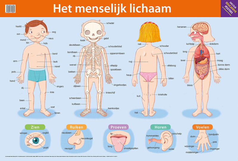 Hoofd, schouders, knie en teen, mond en handen, buik en been, oren, ogen, bruin of blauw, het hoort allemaal bij jou! Lees maar mee en kijk maar goed wat je met die dingen doet!