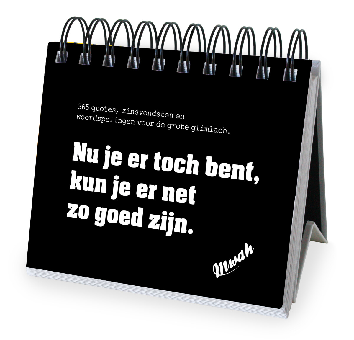 Bedacht en geschreven door Mwah, je weet wel, die van hun bestsellers ‘Wie dit leest is te gek’, ‘Je wordt met de lach leuker’ en ‘Je bent jezelf als geen ander’.